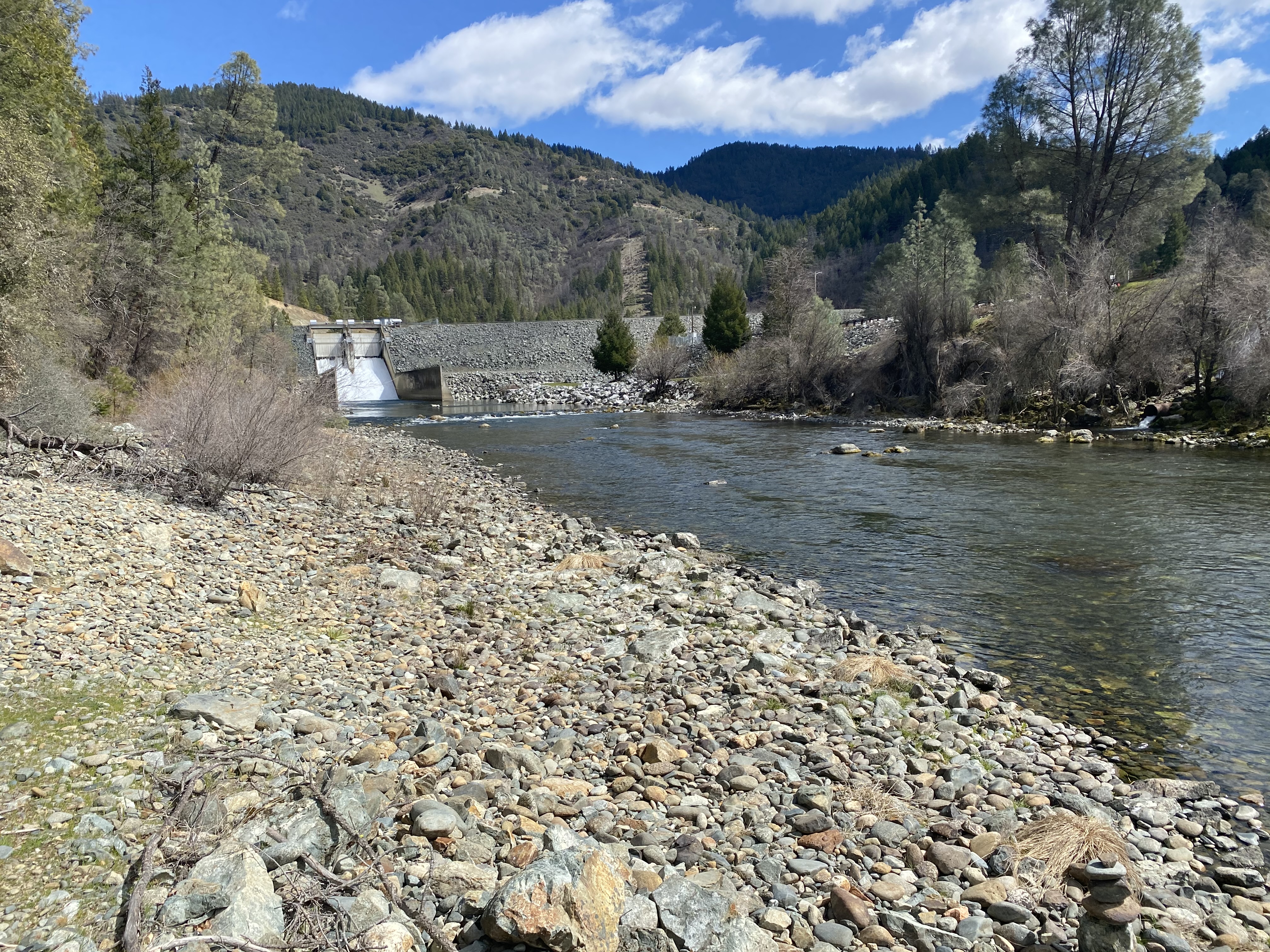 Dams disrupt the natural movement of water, rocks, and wood downstream resulting in a lack of loose, well-sorted sediment and the structural complexity that salmon and steelhead need to successfully spawn, protect their eggs, and rear once hatched. To make up for the loss of these materials below a dam, river restorationists augment materials in areas identified as depleted.