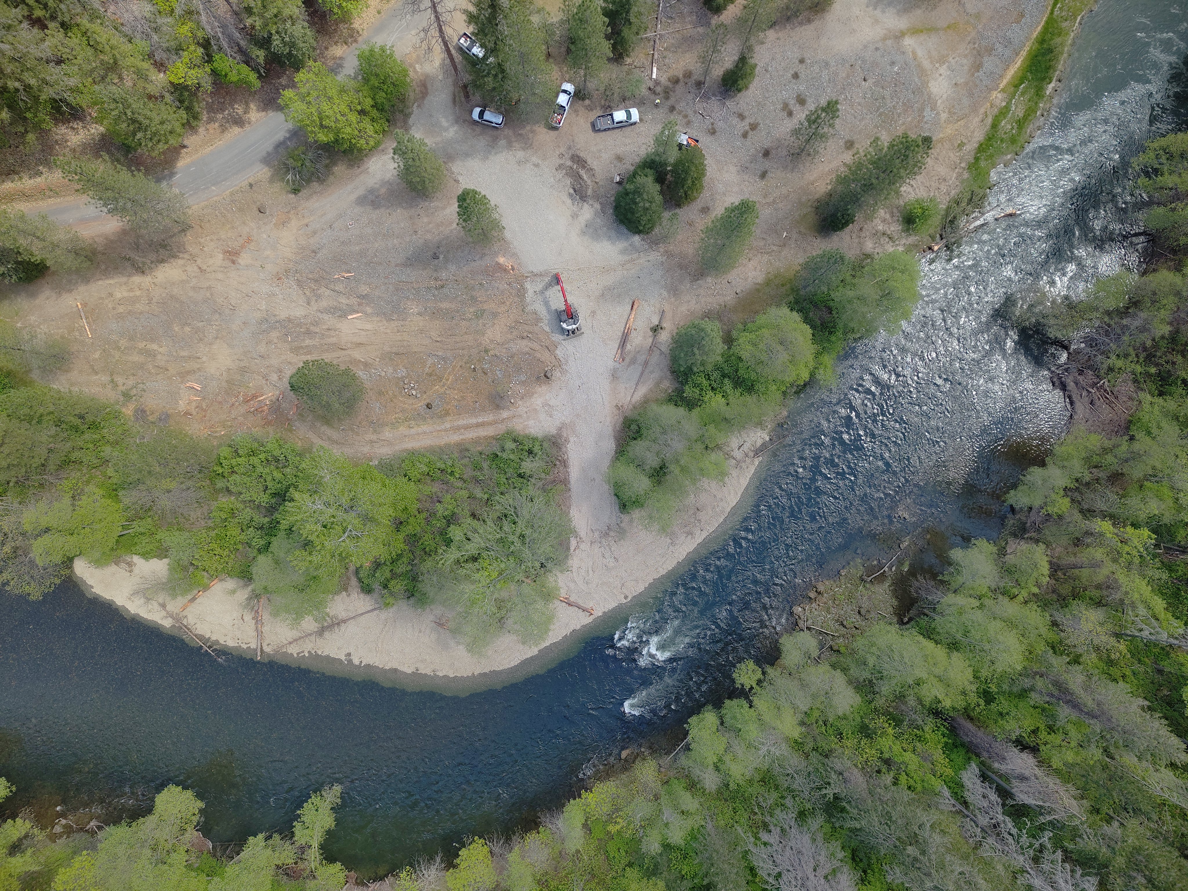 By adding appropriate sizes of sediment and placing locally harvested trees into the river, we can help the river rebuild vital habitat for spawning, support food webs, enhance river health and natural processes. These materials are typically placed prior to higher flow periods, allowing the river to naturally distribute them to form complexity and create dynamic habitat for Trinity River salmonids.